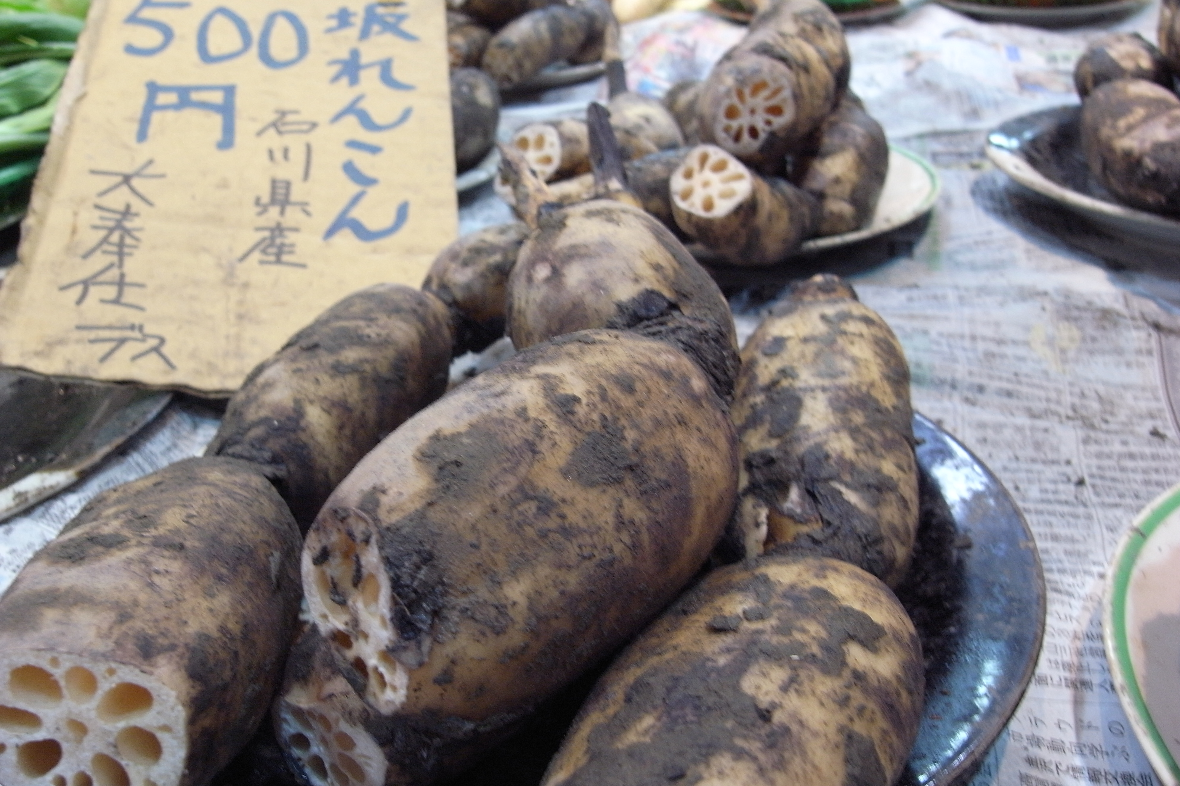 壬生菜や水菜が株ごと店頭に。さすが京都です。東京でも株のまま売ってくれないかなー。
