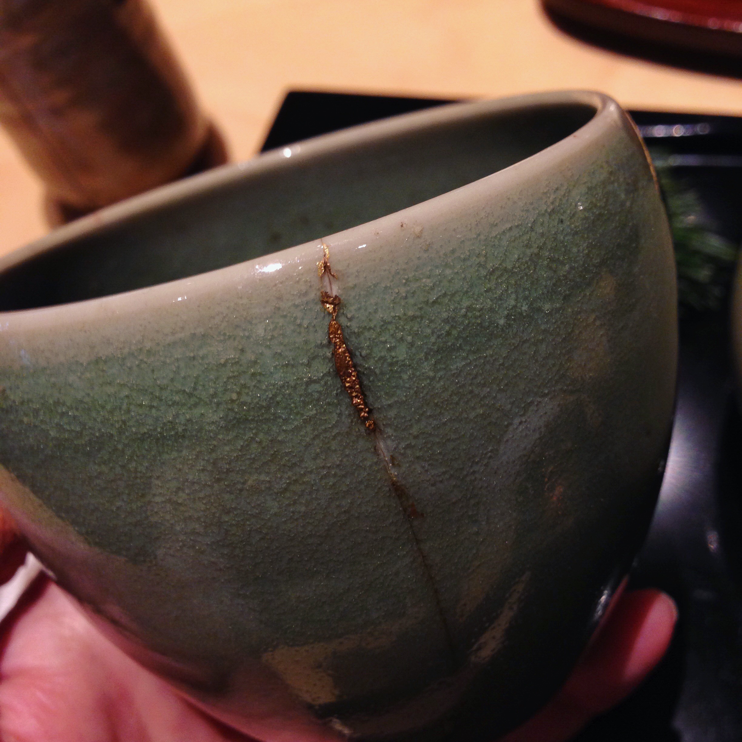 猿田彦さんとのこコラボということもあり珈琲はもちろんのこと、小さな七輪で焼きながらいただくおぜんざいなども大変美味しく、金継ぎがほどこされた器の手仕事のぬくもり感もさらによく。また外観や天井など、杉板がはりめぐらされた隈研吾さんの建築を眺められるのも、厨菓子くろぎ訪問のごちそうのひとつになっています。
