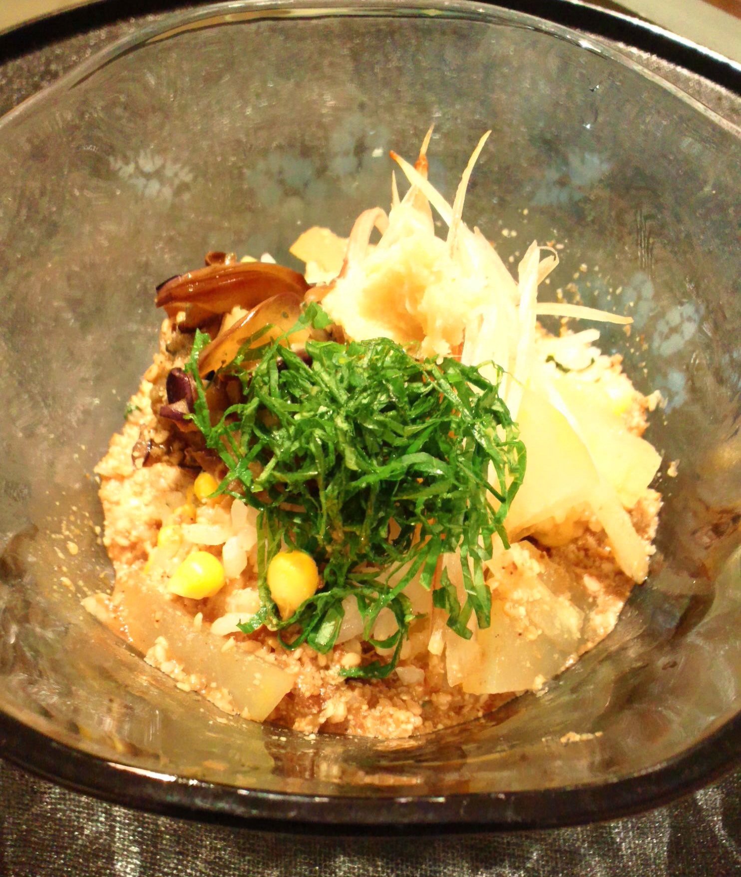 高菜焼き飯は宴の”〆め”とはならず、この後、隆先生が串刺ししてくれた海老の姿焼きや美酒万齢をちびちびしながら、耳にはお能の声、夜は深くふけていきました。